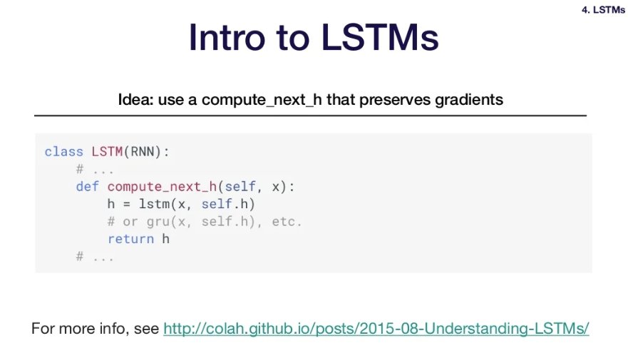 - 목적: use a compute_next_h function that preserves gradients -> vanishing gradients issue를 해결하고자 함.