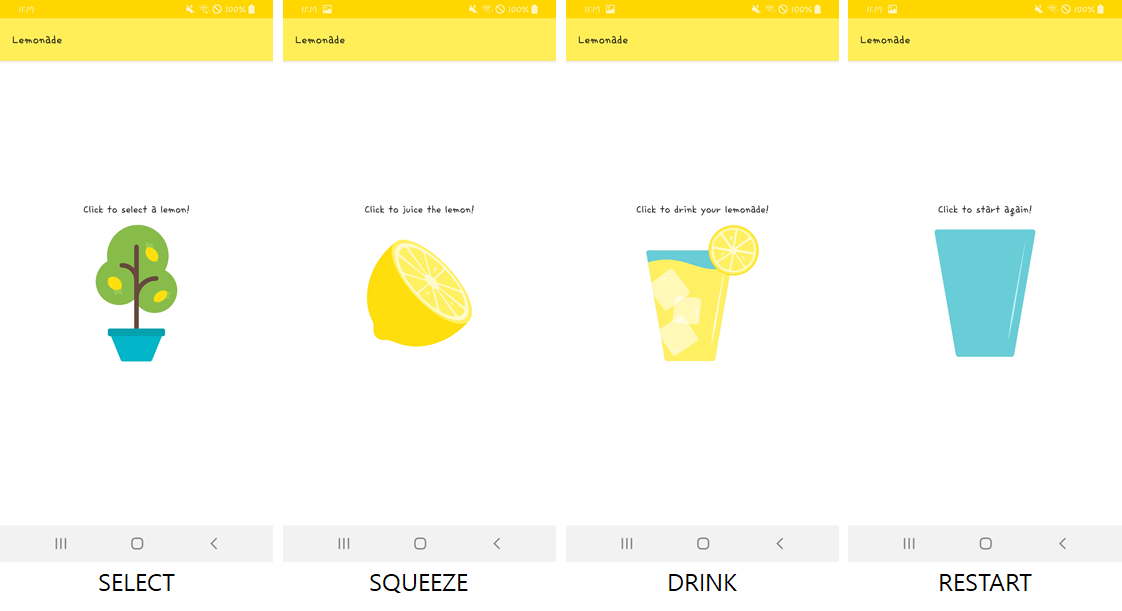 // newText 에 lemonadeState에 대응하는 문자열을 담기